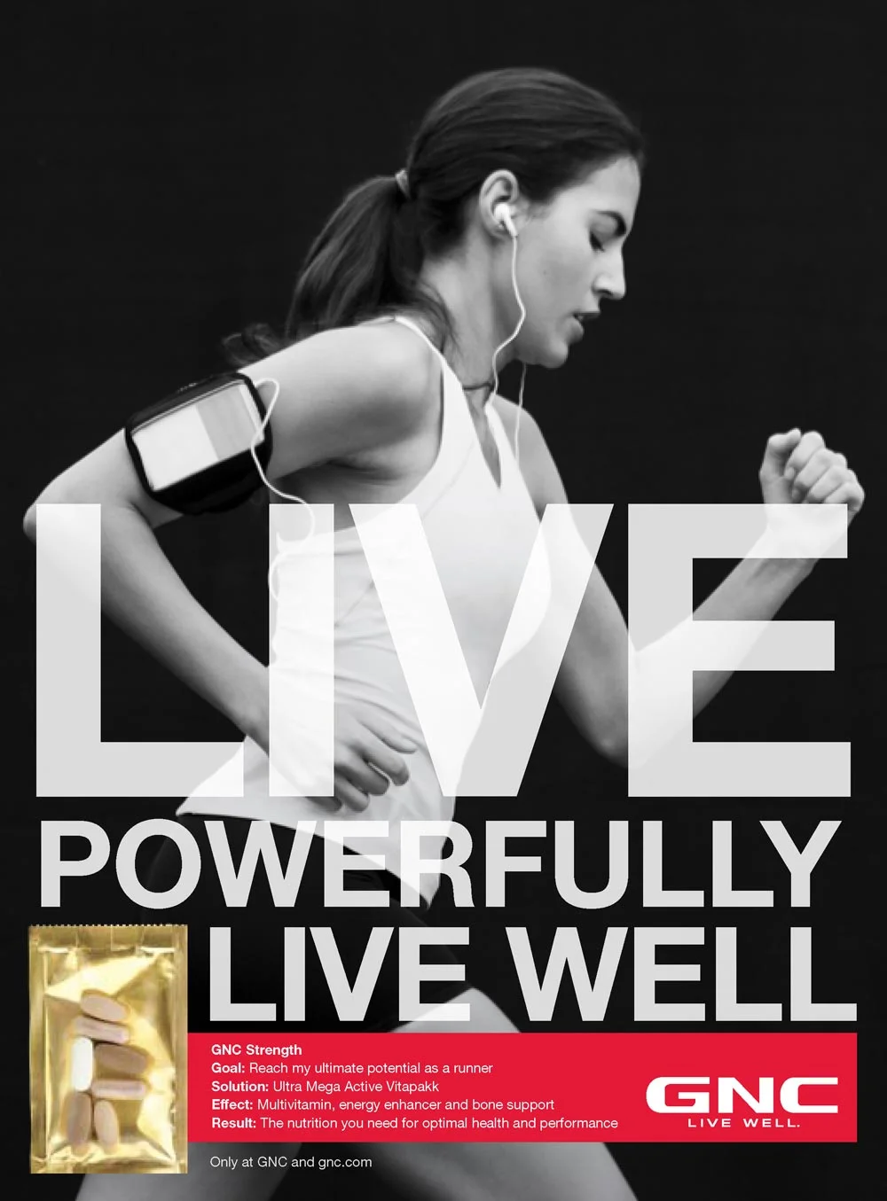 GNC has been synonymous with healthy living through healthful products since 1935. In order to drive growth, GNC needed to extend its brand beyond its core market of sports nutrition and supplement users. The challenge lay in bringing the idea of health and wellness to a larger audience—the everyday consumer—by educating them that taking GNC products will help them to feel better, look better and live better.